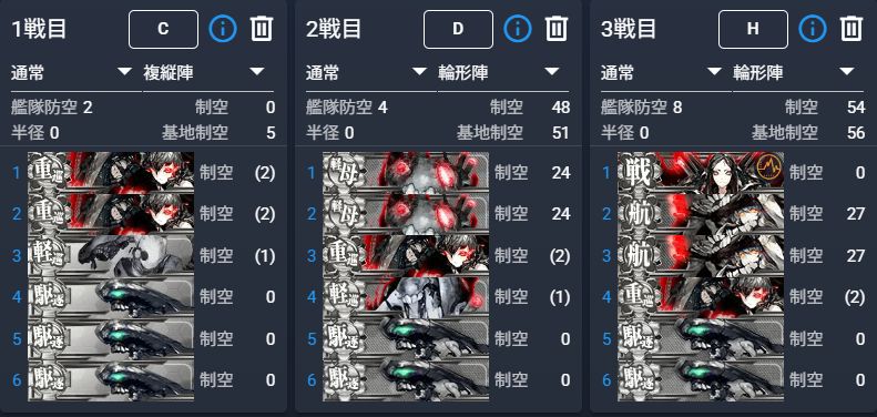 ボスマス制空確保のため制空値165ほど稼いでいます